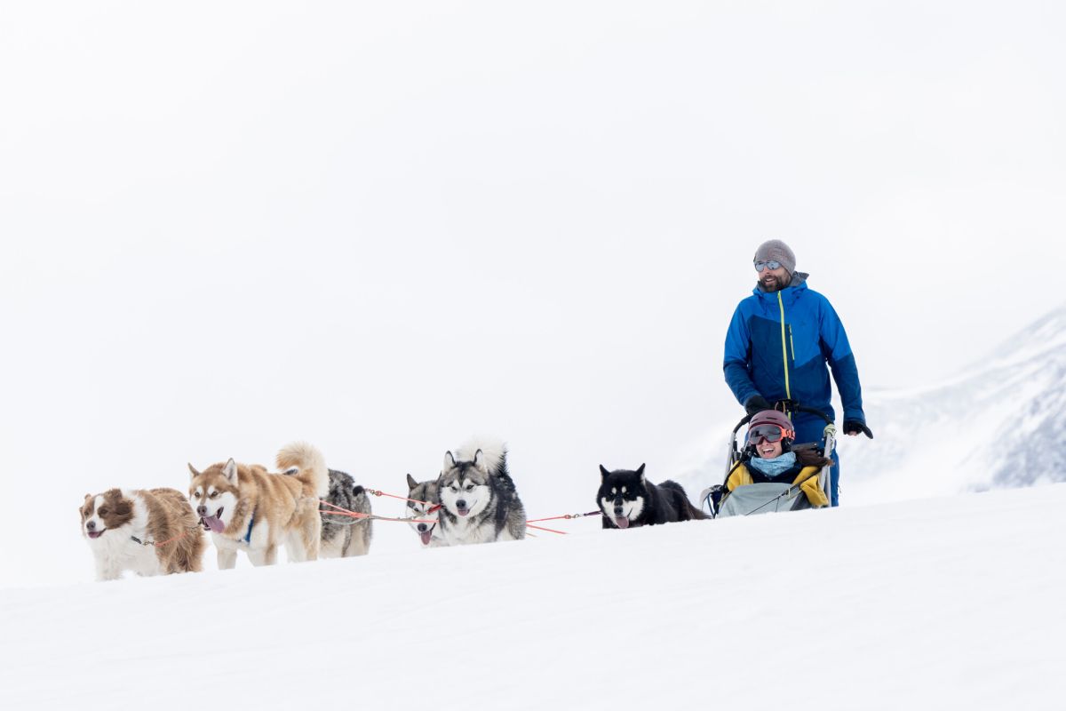 Giulia Monigatti von Engadin Tourismus zeigte sich von der Hundeschlittenfahrt begeistert (Foto: Mayk Wendt).