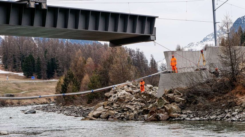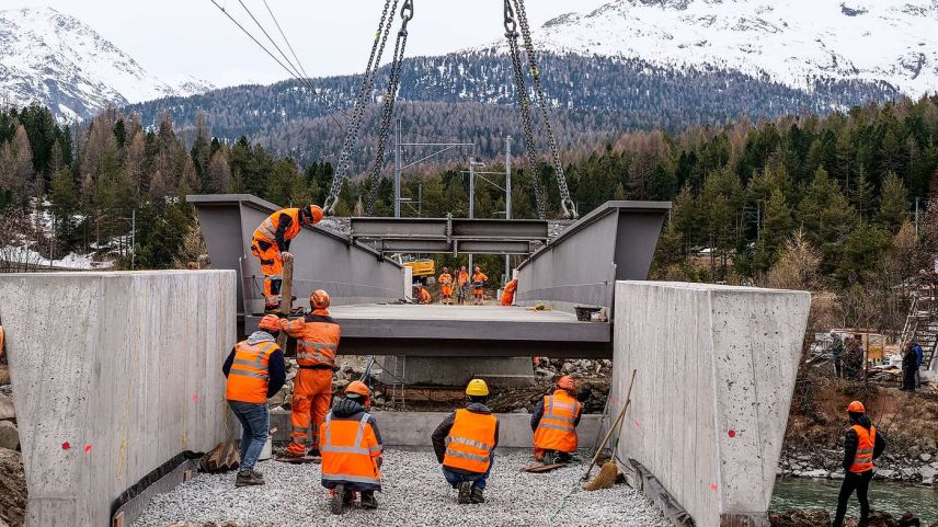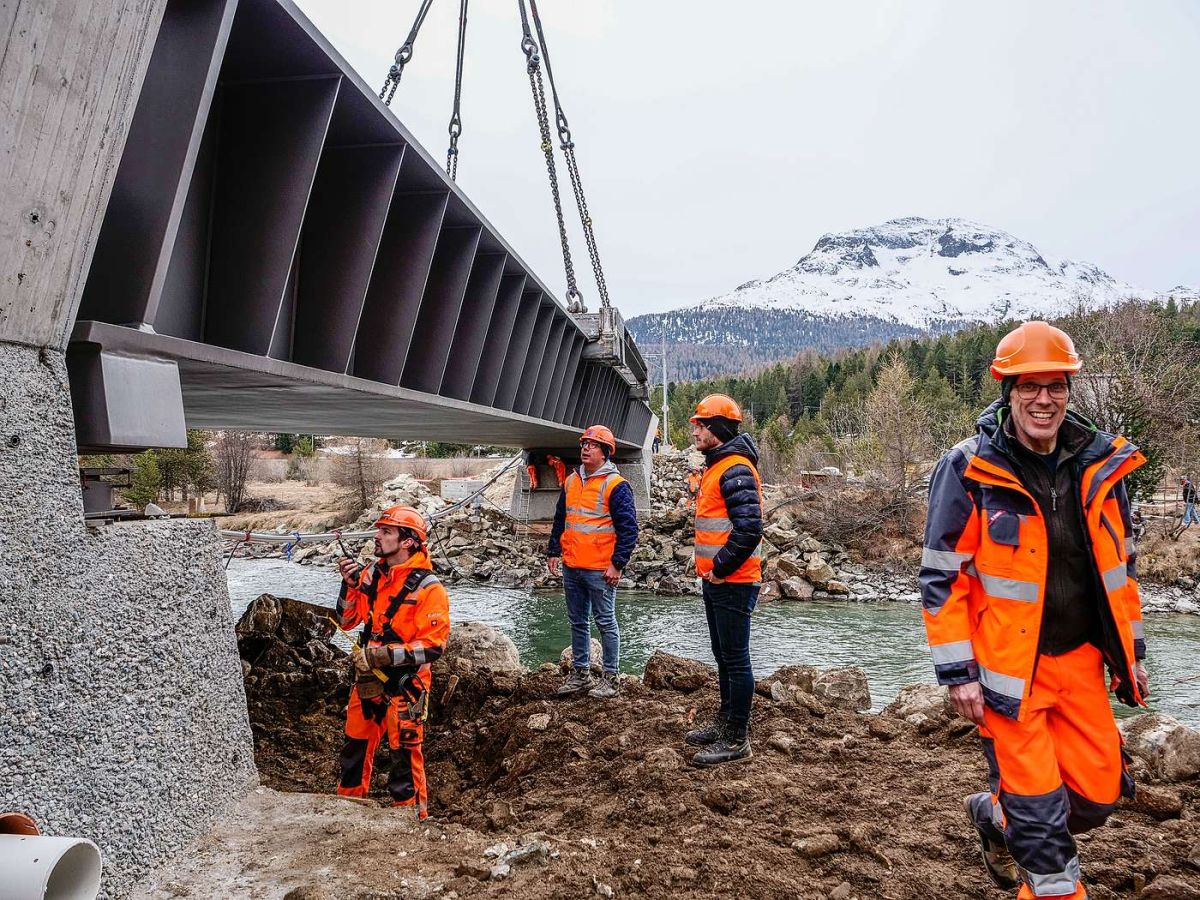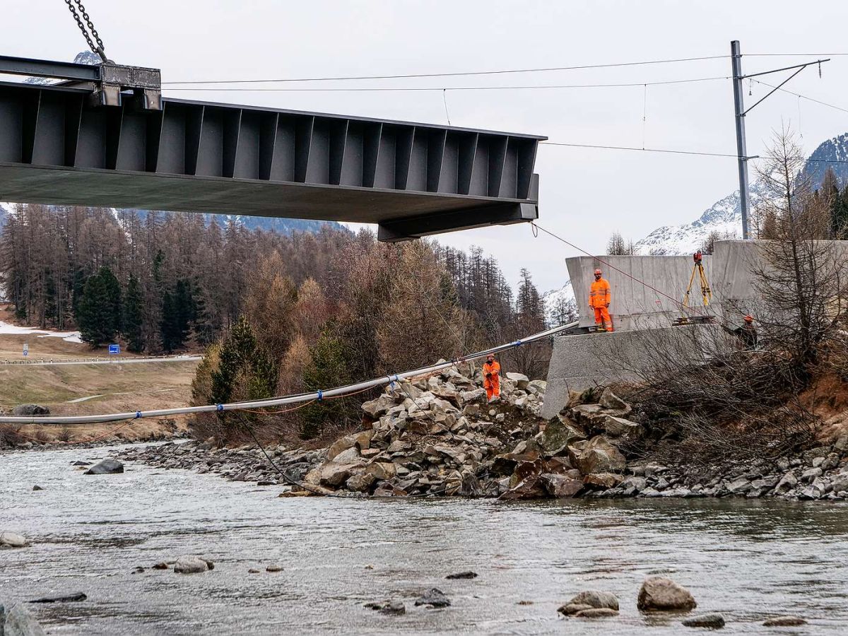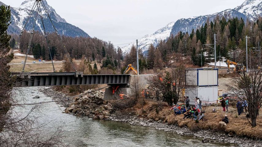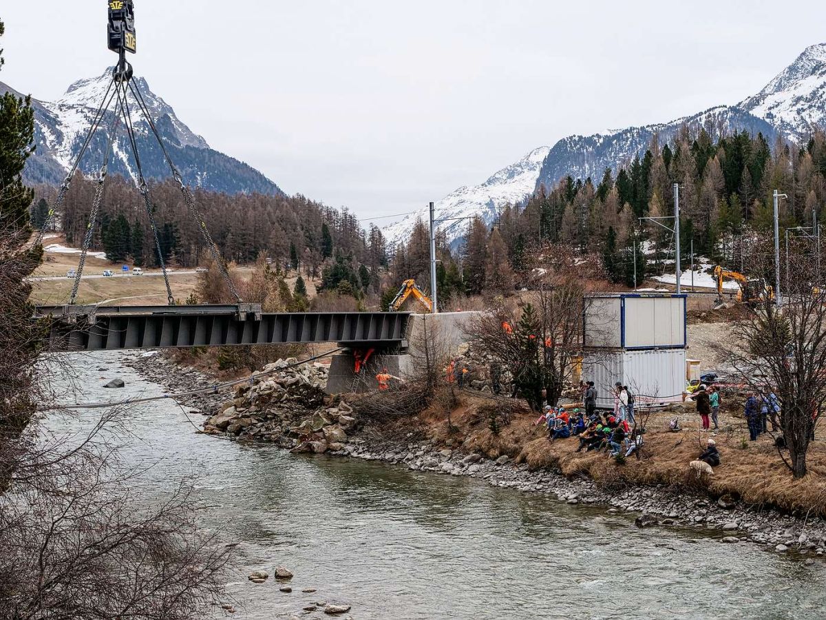 Am Freitag wurde bei Punt Muragl in einer spektakulären Aktion die historische RhB-Stahlbrücke über den Flaz durch eine moderne Stahlkonstruktion ersetzt. Zahlreiche Schaulustige verfolgten die Arbeiten. Im Mai werden in Samedan zwei weitere Brücken ersetzt.