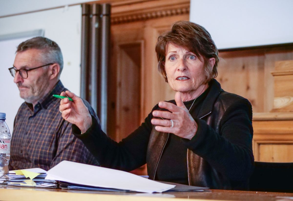 Monzi Schmidt, Präsidentin des Gemeindeverbands öffentlicher Verkehr Oberengadin ist zuversichtlich, was die Entwicklung der Fahrgastzahlen betrifft. Links Vorstandsmitglied Michael Pfäffli. Foto: Jon Duschletta