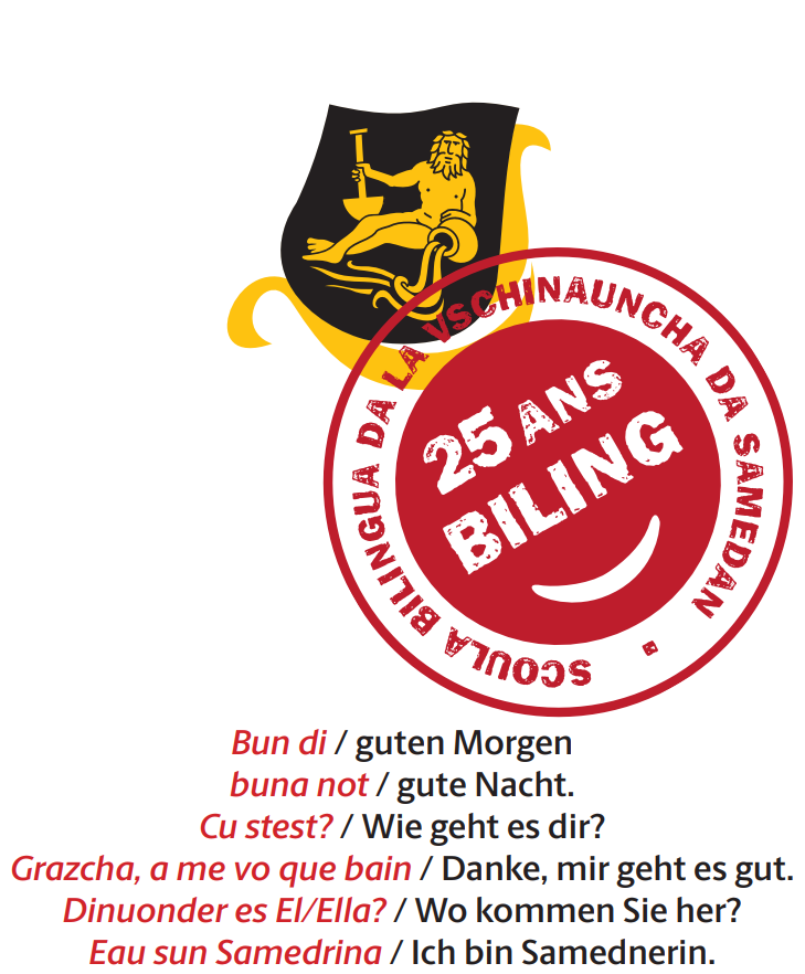 Dal 1996 ho la vschinauncha da Samedan introdüt ün model da scoula biling. Que’s trattaiva d’ün prüm tel model linguistic in üna scoula grischuna. Ün quart tschientiner pü tard sun las prestaziuns scolasticas a reguard il tudas-ch sül listess livel scu tar scoulas be tudas-chas.