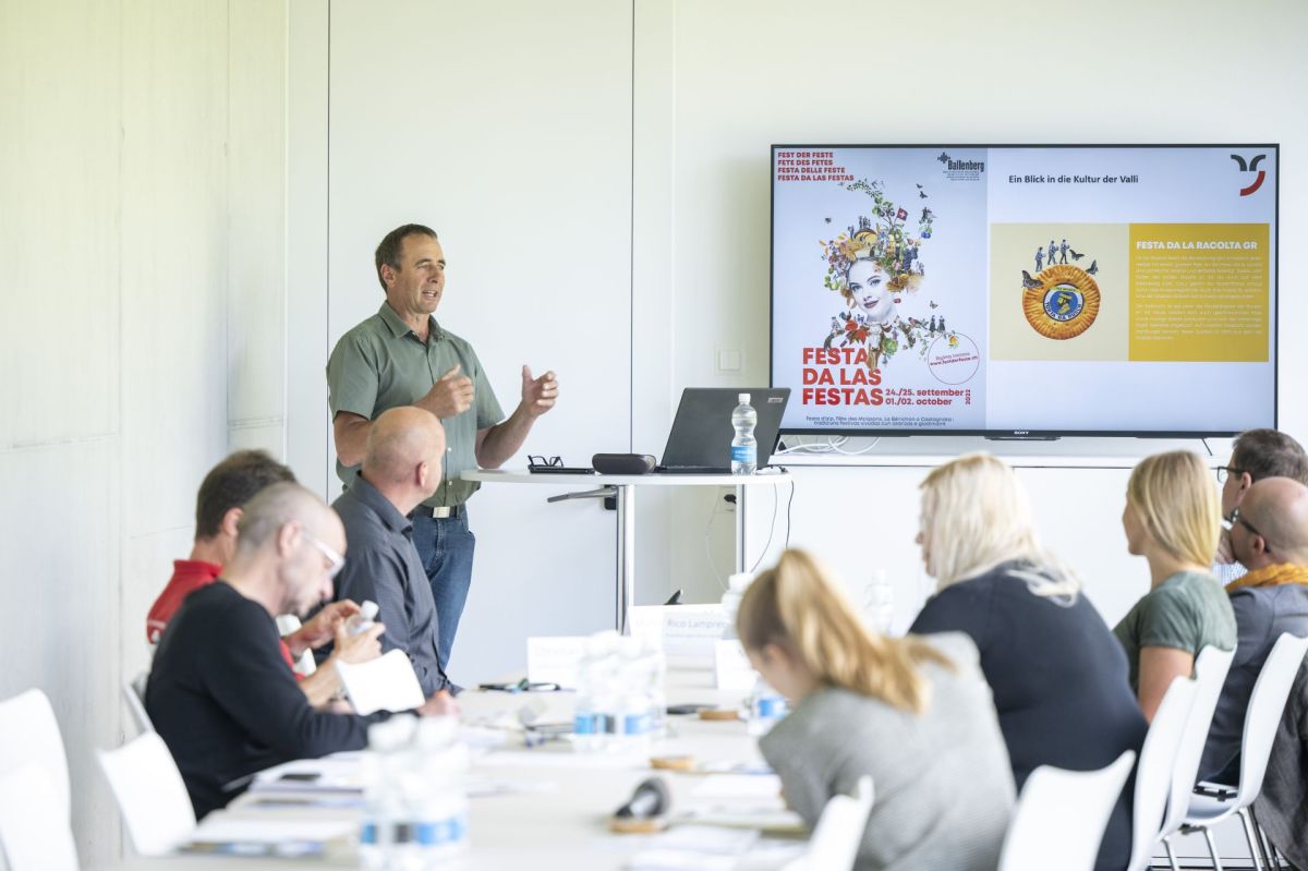 Rico Lamprecht, grondcusglier per la Val Müstair ha declerà co cha la Val Müstair as preschainta a la «Festa da las festas» chi ha lö d’utuon i’l museum al liber Ballenberg (fotografia: Mayk Wendt).
