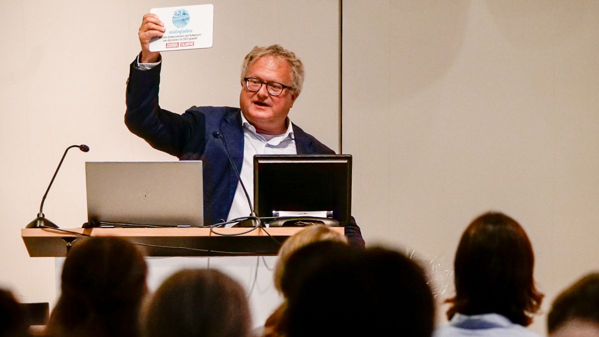Werner De Schepper da la Schweizer Illustrierte cul premi «DigiTal». fotografia: Jon Duschletta