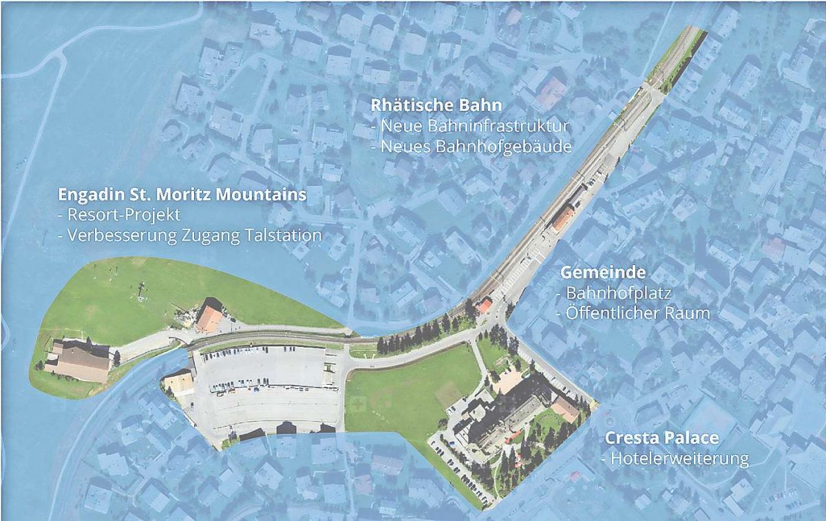 Ein neuer Bahnhof, neue Hotelbetten auf dem Parkplatz der Bergbahnen und ein Hotel-Erweiterungsbau: Im Gebiet Pradà in Celerina soll sich in den kommenden Jahren so einiges ändern. Basis für die drei Projekte bildet der Studienauftrag Pradè. Bis zu einer Umsetzung dürfte es aber noch dauern.