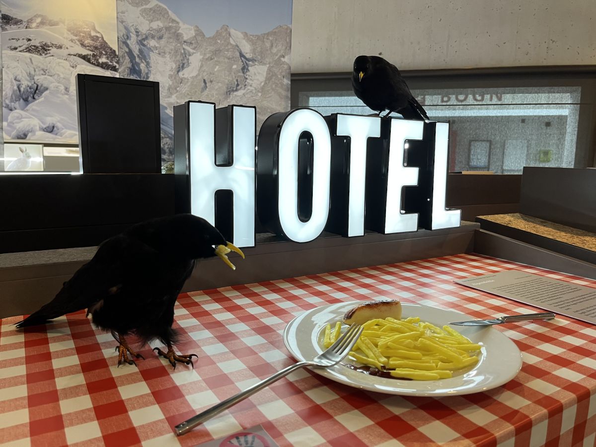 Üna strategia da las corviglias per surviver l’inviern es da’s nudrir da rüt d’umans o d’ingolar mangiativas sün terassas da restorants sün pista (fotografia: Martin Camichel)