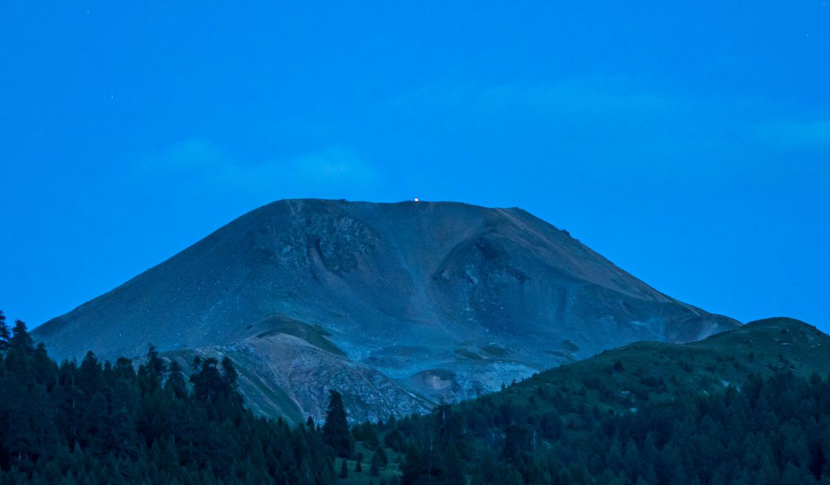 Zurzeit ist in der Dämmerung auf dem Piz Uter in Zuoz ein merkwürdig blinkendes Licht zu beobachten. Ein Kunstprojekt, welches die Menschen zurück in die Natur, in ihre eigene Mitte holen und auf den Klimawandel aufmerksam machen will.
