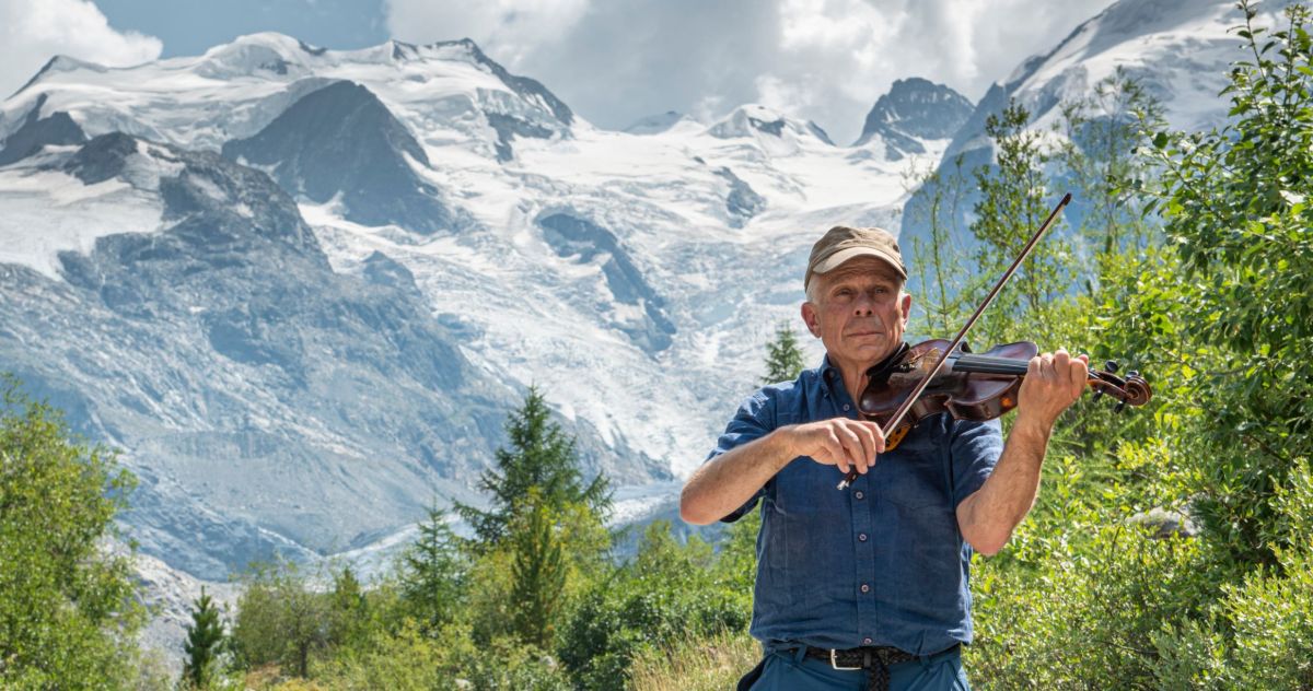 Der Samedner Glaziologe Felix Keller wünscht sich mehr Handeln und weniger Alarmismus, wenn es darum geht, Lösungen für das Gletschersterben zu finden. Dafür packt er auch mal die Geige aus. Foto: Reto Stifel