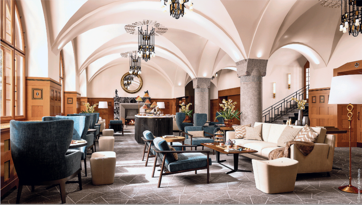 Eine Visualisierung der neuen Lobby im komplett sanierten Hotel «Grace La Margna».Foto: z. Vfg.