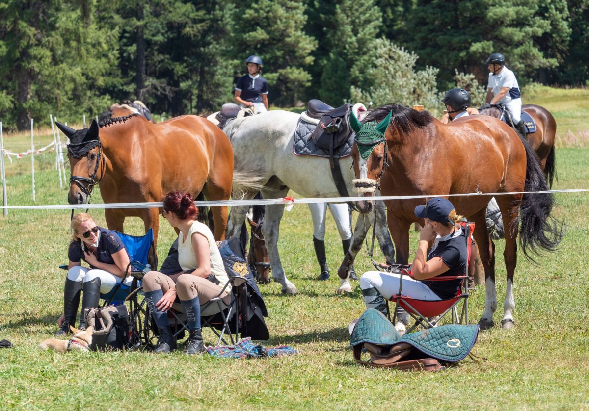 Der Parcours für den Preis Engadiner Post ist mittlerweile bereit. Die 31 Amazonen und Reiter schreiten den Parcours ab, prägen sich die zehn Hindernisse ein und bereiten ihre Vierhufer auf den 550 Meter langen Ritt vor.