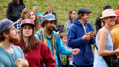 Wie gewohnt bevölkerten auch zahlreiche Kinder das Festivalgelände beim ehemaligen Hospiz bei Chapella, von welchem einst ein Saumweg durch die Val Susauna und über den Scalettapass führte. Speziell einbezogen fühlten sich die Kinder wohl am Sonntagmorgen beim Konzert des Prättigauer Sängers, Komponisten und Kabarettisten Coni Allemann alias Bartli Valär. Zusammen mit drei Nachwuchssängerinnen intonierte er verschiedene seiner Songs. Als Zugabe beispielsweise auch die viel applaudierte Cover-Version des Steppenwolf-Klassikers «Born To Be Wild» aus dem Kultstreifen «Easy Ryder» von 1969. Bei Allemann und seinem Mädchenchor hiess es dann – aus Sorge um die Überlebensfähigkeit des Bauerstandes – «...gebore zum heue, es tuet aim freue ...»