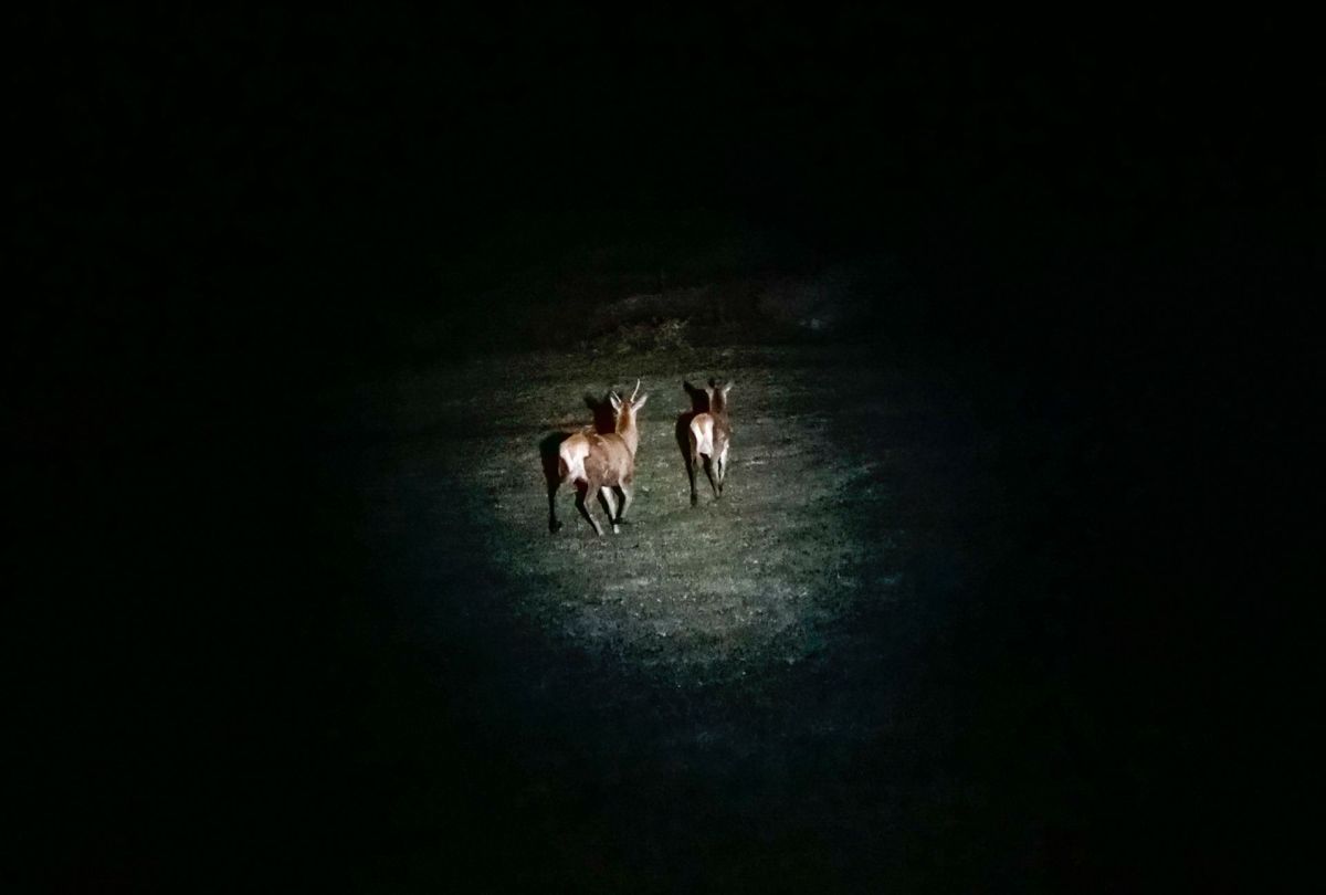 Nur selten verharren Hirsche und andere Wildtiere lange genug im Scheinwerferkegel, als dass man sie fotografieren kann. Foto: Jon Duschletta