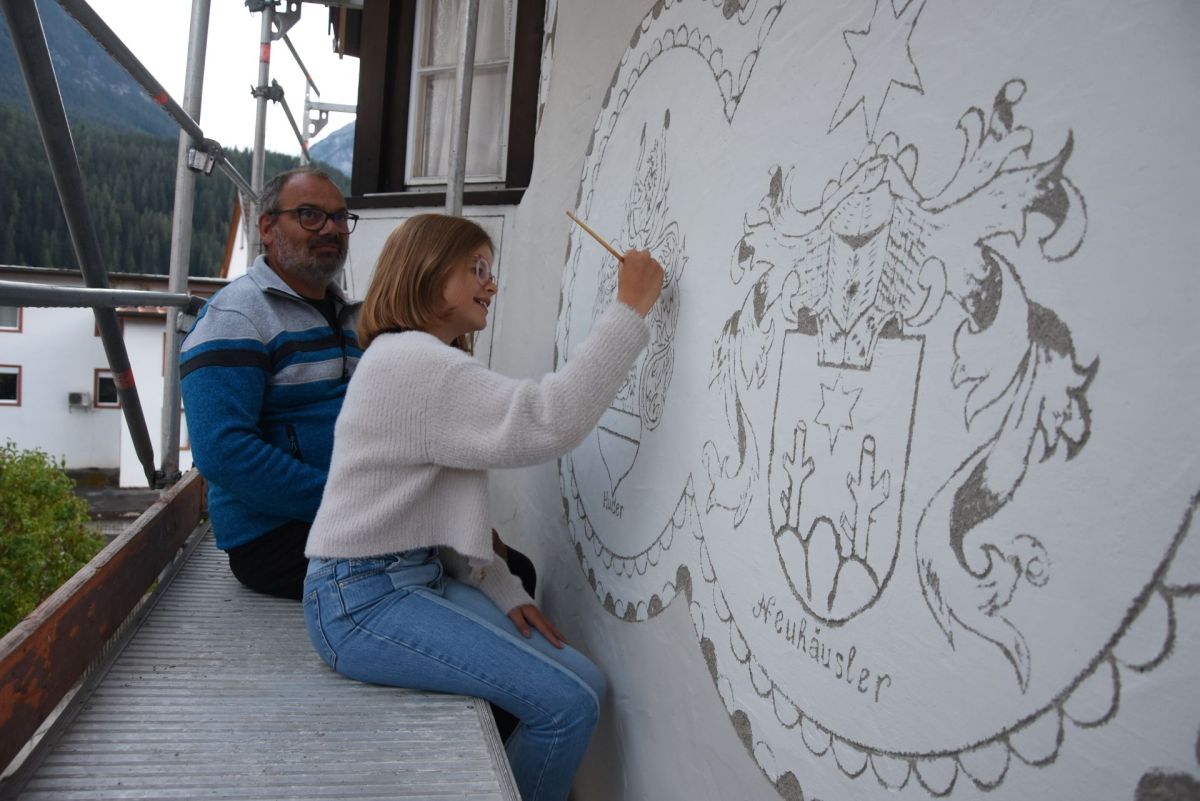 Uschè ha Not Neuhäusler pudü muossar e surdar la tecnica da sgrafits a la quarta generaziun. Fingià seis bazegner Otto Neuhäusler d’eira artist e pittur e vaiva cumanzà cun l’affar a Scuol. Dal 1999 ha surtut Not Neuhäusler l’affar da pittur da seis bap e trais ons plü tard ha’l tut in fittanza ün indriz da squittar a Manaröl per as concentrar plü ferm eir sülla lavur da carosseria. Dal 1968 vaivan seis bap e seis bazegner renovà la chasa paterna a Bagnera e fat ils nouvs sgrafits. Uossa ha Not Neuhäusler pudü dar inavant la tradiziun e muossar la tecnica da sgrafits eir a sia figlia. Sch’ella voul üna jada eir dvantar pittura e far sgrafits süllas chasas engiadinaisas in tuot l’Engiadina, nun ha’la vuglü e pudü dar resposta. Il prüm sto’la nempe amo finir la scoula. Cha la lauvur da stà haja listess fat plaschair, quint’la e finischa l’ultim strich dal sgrafit vi da la chasa a Bagnera.