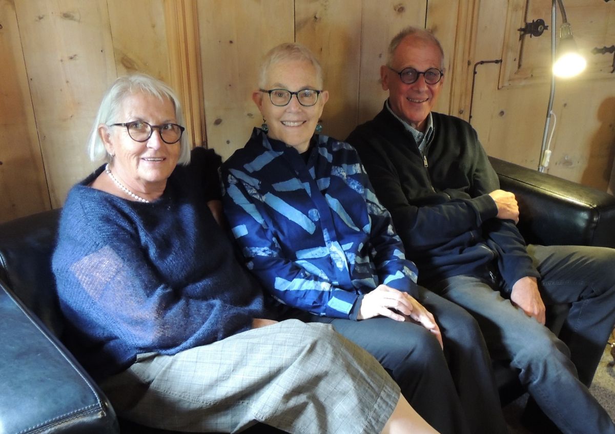 Beatrice Lanter, Gina Ballinger ed Albert Lanter s’allegran da l’exposiziun (fotografia: Benedict Stecher).