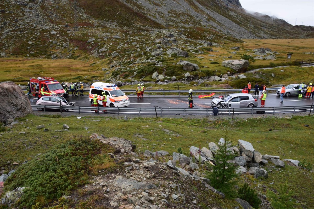 Am Samstagvormittag ereignete sich auf der Nationalstrasse N29 oberhalb von Silvaplana eine Frontalkollision zwischen zwei Personenwagen. Zwei Personen wurden mittelschwer, fünf leicht verletzt.