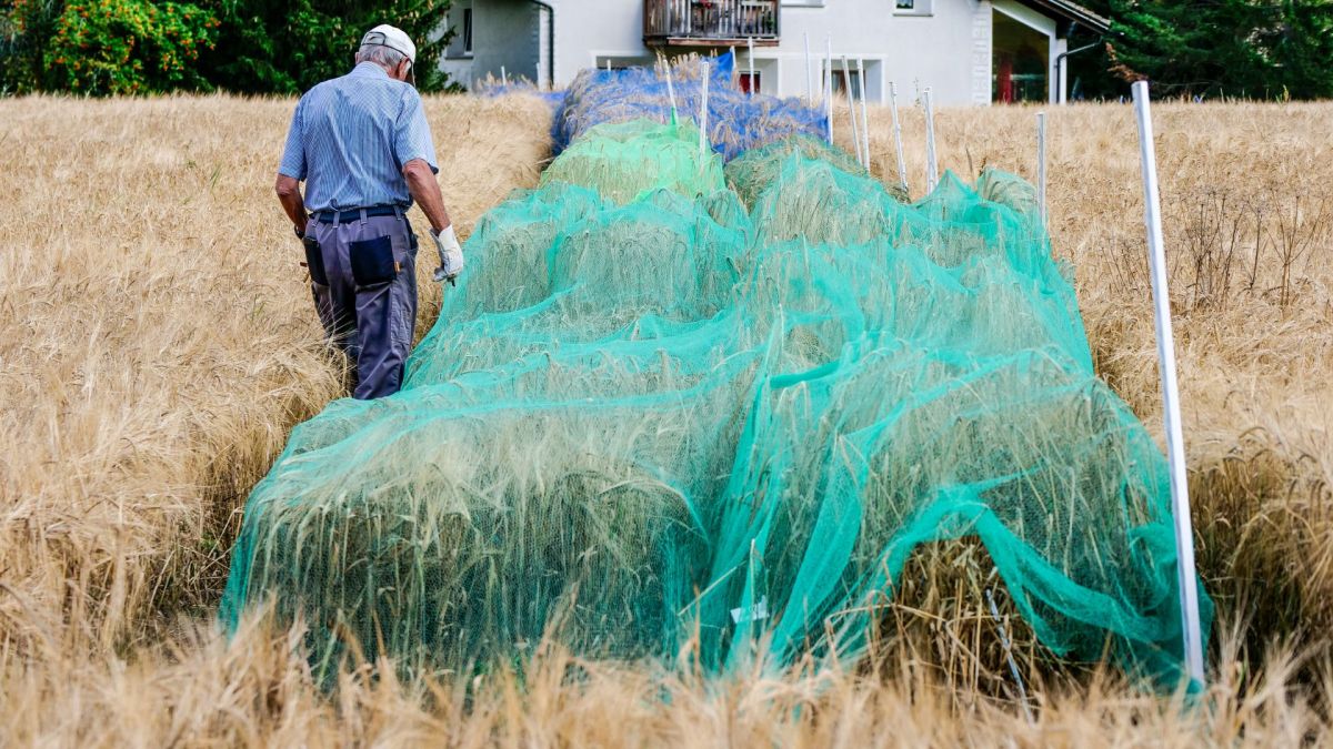 L’agronom pensiunà Padruot Fried da Lavin immez il chomp dad üerdi da bieraria «Quench» a Zernez. Suot las raits da culur as rechattan parcellas da perscrutaziun da sorts nouvas, modernas e resistentas. fotografias: Jon Duschletta