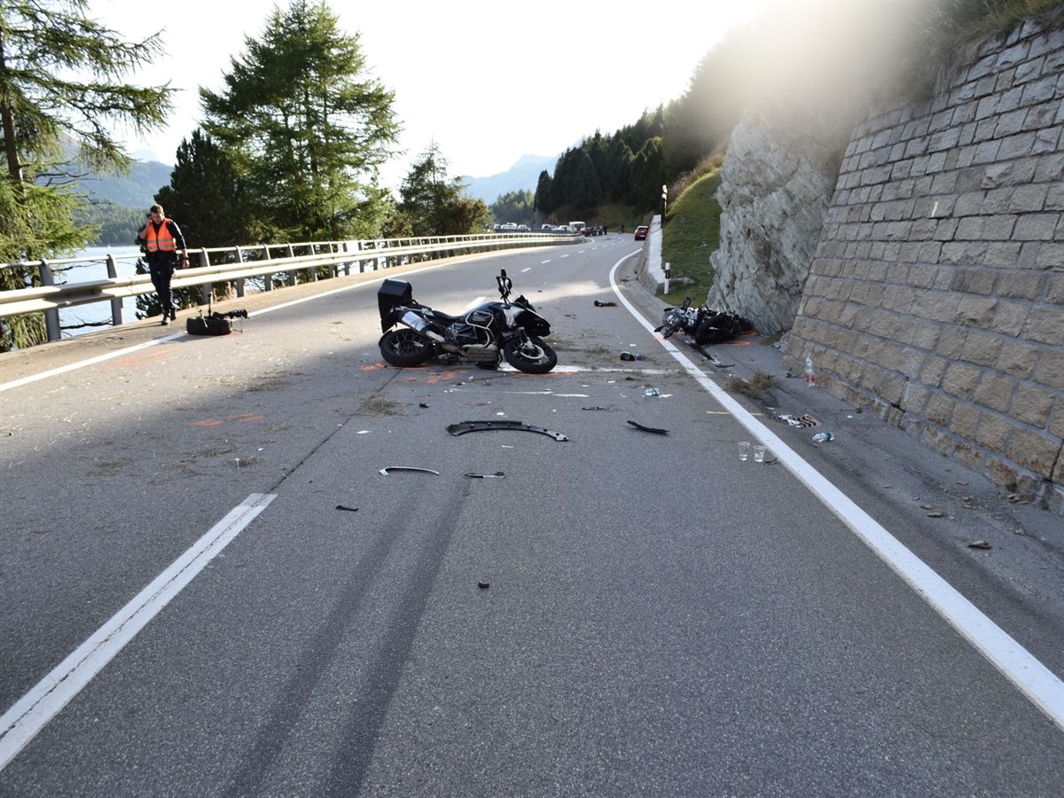 Die 61-jährige Schweizerin fuhr am Sonntag um 16.35 Uhr mit ihrem Auto auf der Hauptstrasse von Plaun da Lej in Richtung Maloja. Aus der Gegenrichtung nahten ein ebenfalls 61-jähriger und ein 56-jähriger Motoradlenker. Das Auto kam auf die Gegenfahrspur und kollidierte dort mit den beiden Motorradfahrern. Diese, beides israelische Staatsangehörige, stürzten und verletzten sich. Einer wurde von der Rega mit schweren Verletzungen ins Kantonsspital Graubünden nach Chur und der andere mit einer Ambulanz der Rettung Oberengadin mit mittelschweren Verletzungen ins Spital nach Samedan transportiert. Die Strasse war während der Arbeiten auf der Unfallstelle bis 18.00 Uhr gesperrt. In Zusammenarbeit mit der Staatsanwaltschaft klärt die Kantonspolizei Graubünden die genauen Umstände ab, die zu diesem Verkehrsunfall geführt haben.