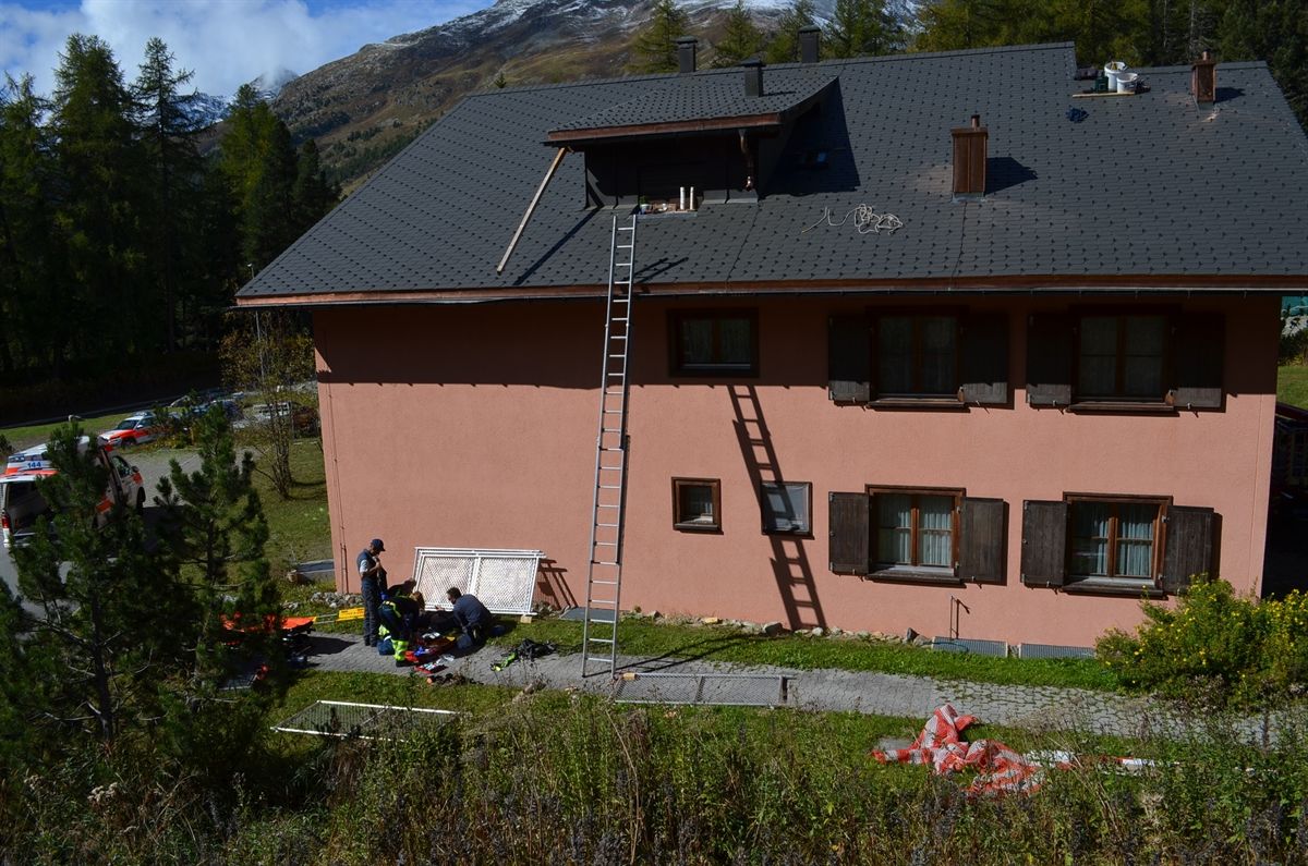 Der 41-jährige Italiener war mit seinen Arbeitskollegen mit den letzten Arbeiten einer Dachsanierung beschäftigt. Als er um 11.15 Uhr über die Leiter absteigen wollte, rutschte er auf dem Dach aus, konnte sich noch kurz an der Regenrinne festhalten und stürzte dann über fünf Meter ab. Ein Ambulanzteam der Rettung Oberengadin verarztete den Verletzten und überführte ihn ins Spital nach Samedan. Die Kantonspolizei Graubünden hat die Ermittlungen zu diesem Arbeitsunfall aufgenommen.