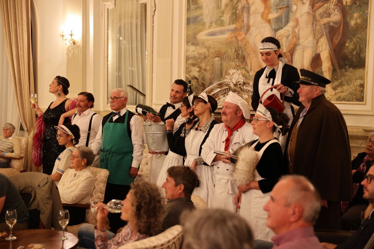 La Società da teater Ftan ha preschantà il toc «I d’eira üna jada ün hotel» chi tematisescha la cartoteca dal Hotel Waldhaus a Vulpera (fotografia: Lukas Zitzer).