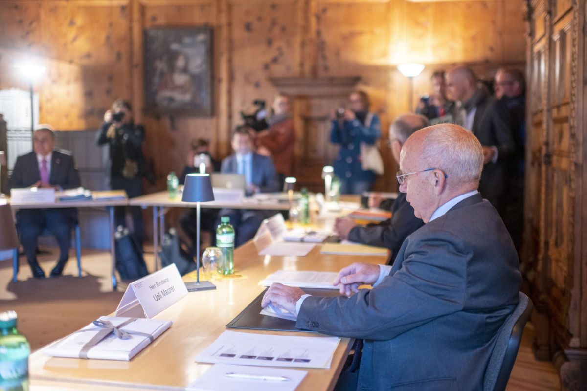 Mincha marcurdi as chatta il Cussagl federal per üna tschantada. Quella ha normalmaing lö illa Chasa federala, ma daspö il 2010 han quellas minchatant eir lö ourdvart da quella, dimena «extra muros». La tschantada a Müstair d’eira fingia la 17avla da quellas tschantadas ourdvart Berna. Avant la sezzüda s’ha il president federal Ignazio Cassis però amo drizzà a las medias ed ha bivgnantà ils preschaints e las preschaintas per rumauntsch: «Stimadas damas e stimads signuors, eir sch’eu nu discuor rumauntsch, as vuless eu salüdar da cour», ha dit Ignazio Cassis.La visita e la tschantada illa Val Müstair es fingià la quarta vouta cha’l Cussagl federal as chatta ingon in corpore illas quatter direcziuns da la Svizra scu eir i’ls quatter territoris linguistics. Uschè s’ha il Cussagl federal chattà per üna tala tschantada i’l vest a Genevra, davo i’l nord a Schafhausen e’l «viadi da scoula» ha gnü lö ingon i’l chantun Tessin. Differentas sun eir las localitats ingiò cha’l Cussagl federal ha gnü sias tschantadas «extra muros». Quellas han fin uossa gnü lö in scoulas, in museums ed in chasas da regenzas. «Ed hoz vaina per la prüma vouta nossa tschantada in üna clostra – eau sun fingià plain tensiun co cha l’atmosfera varà ün influenza sün nossas decisiuns», ha dit Ignazio Cassis cun ün rier.