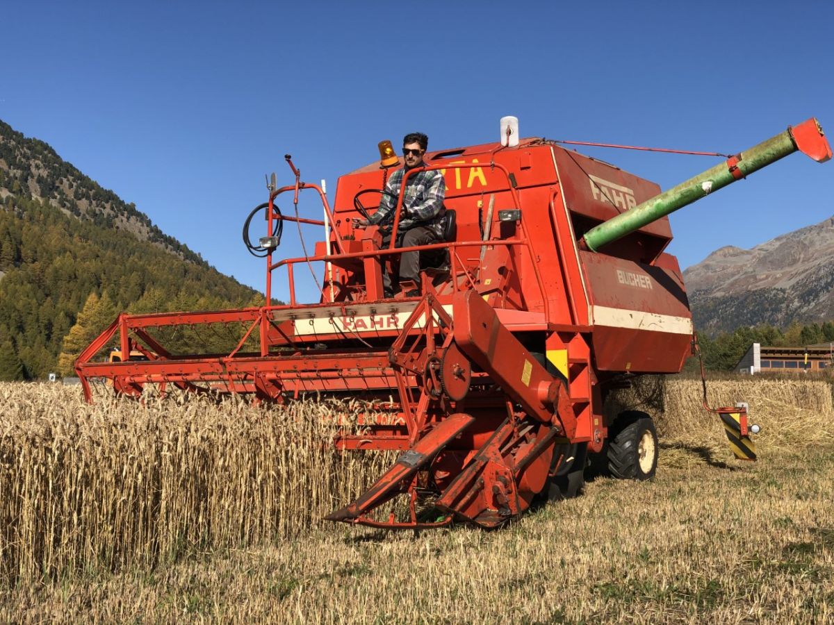 Kann auf 1800 Metern Getreide wachsen? Welche Sorten sollen angebaut werden? Diese Fragen versucht Bio-Bauer Gusti Clalüna mit Frau Lurdes mit einem dreijährigen Feldversuch zu beantworten. Foto: Marie-Claire Jur