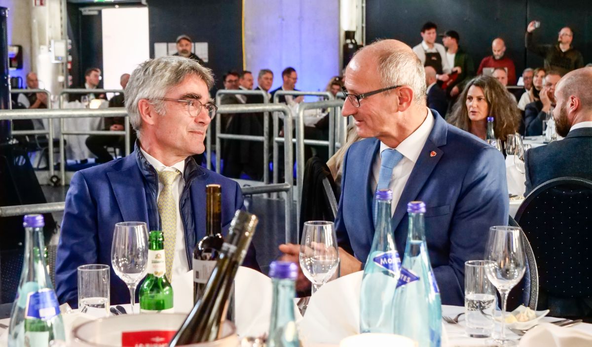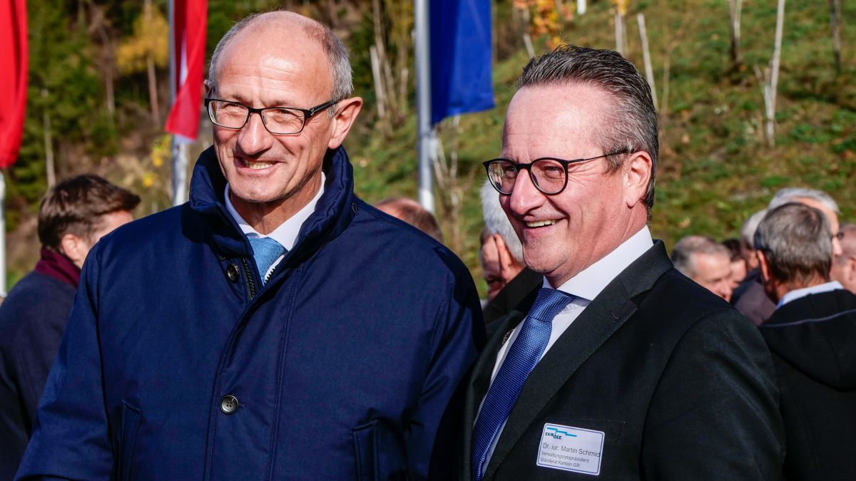 Bündner Regierungsrat und Energiedirektor Mario Cavigelli im Gespräch mit dem Tiroler Landeshauptmann Anton Mattle.