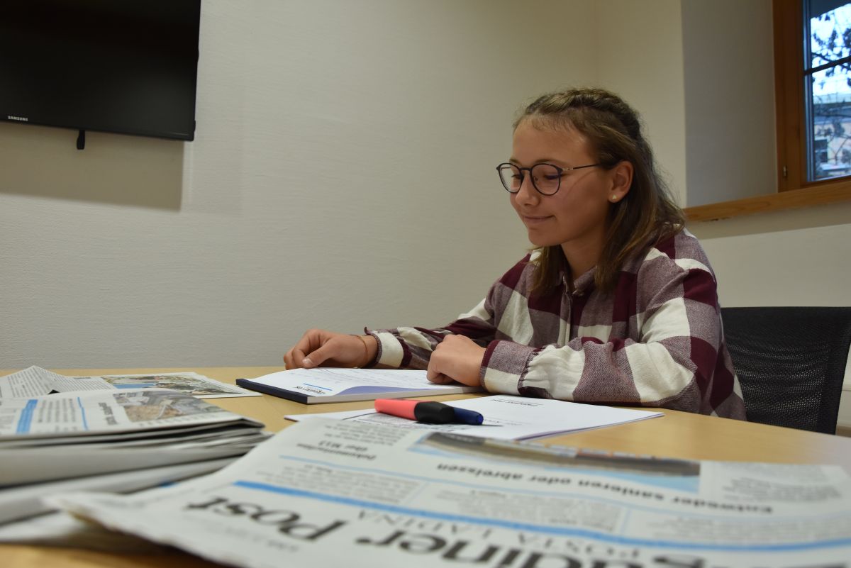 Kaya Götsch da Ftan valütescha ils texts da la Posta Ladina (fotografia: Nicolo Bass).