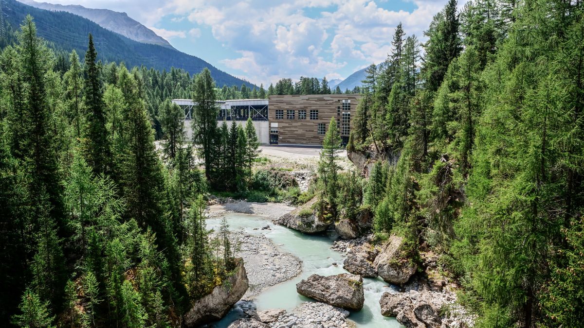 Die neue regionale Abwassereinigungsanlage unterhalb von S-chanf am Ufer des Inn. Foto: Jon Duschletta
