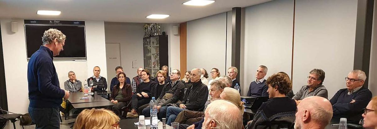 Peter Fanconi (links) während seinen Ausführungen in Celerina. Foto: z.Vfg.