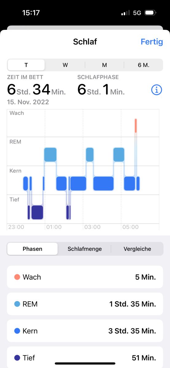 Ed uossa vain amo la megldra: Ultimamaing n’haja fingià surgni il regal pel tschinquantavel, nempe la plü nouv’ura digitala cul mailin. Quella nu muossa be l’urari ed ils prossem termins, quella controlla simplamaing tuot: il ritem e la frequenza dal cour, la pressiun dal sang, la temperatura, scha dod inandret e dafatta scha tir il flà. Quella masüra eir sco ch’eu dorm: fetscha be ün cupidin o ün sön profuond. Mincha bunura survegna üna statistica da tuot mias fasas da dormir. Quist’ura cumonda dafatta cur cha stögl ir in let per dormir avuonda. E da tuot quista controlla as stoja bod gnir amalà! Però eu n’ha decis: scha quist mobel am seccà massa, schi til lascha controllar üna jada eir meis passacorp.