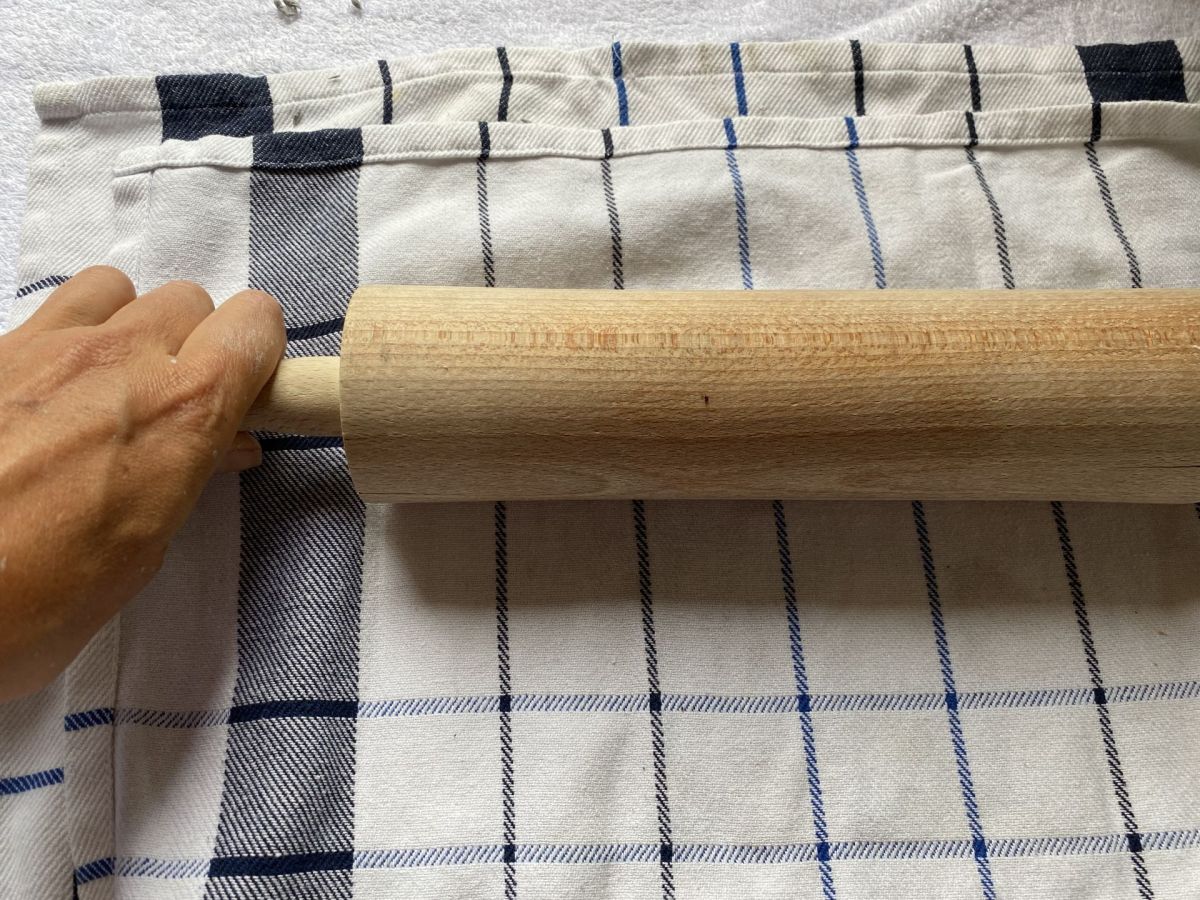 9. Wiederhole den Vorgang, bis du so viel Papier hast, wie du möchtest. Decke die Papiere mit einem zweiten Tuch ab und rolle mehrmals fest mit dem Wallholz darüber, um überschüssiges Wasser herauszupressen.
