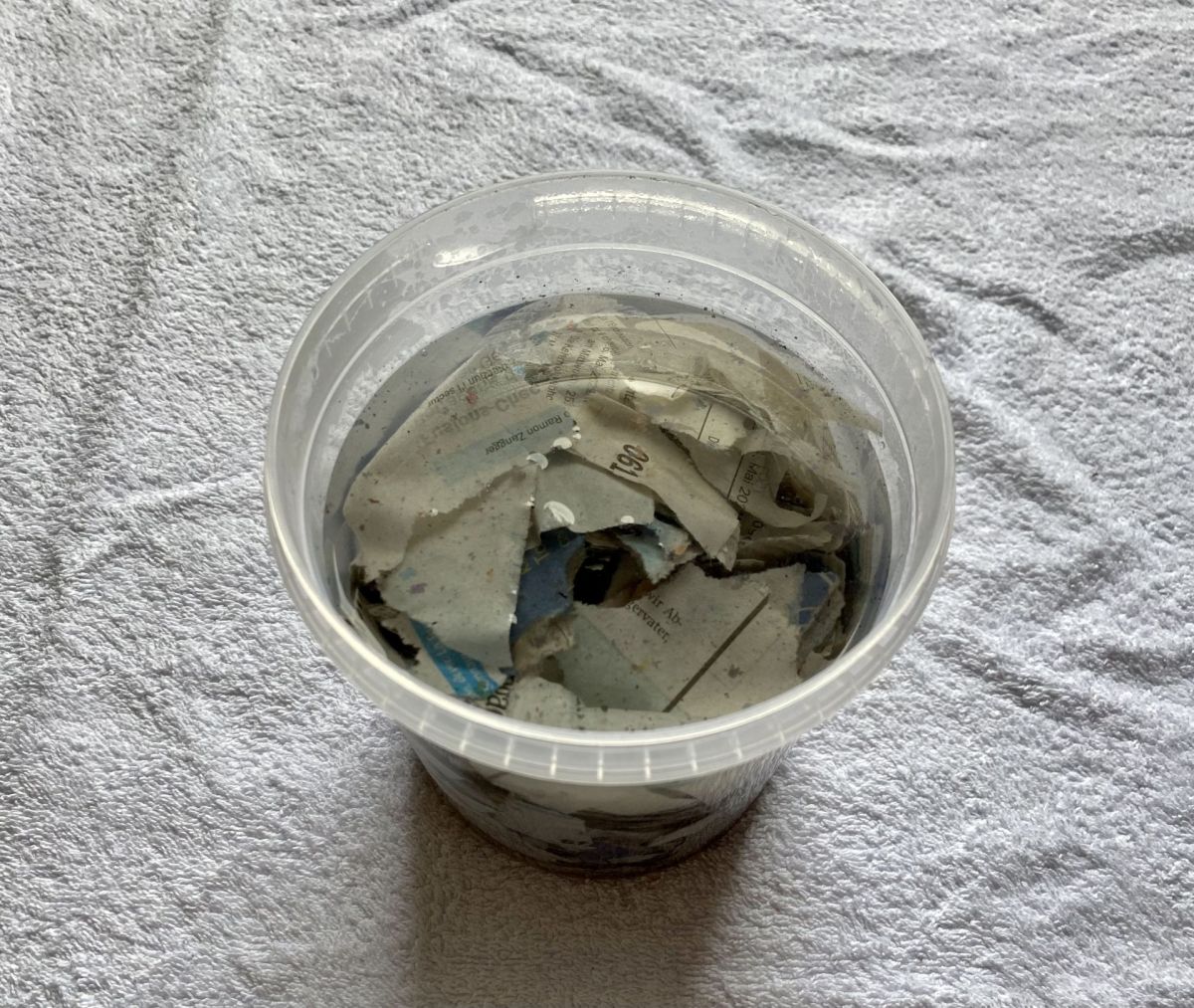 Wir verwenden zum Papierschöpfen altes Zeitungspapier, wodurch unser selbstgemachtes Papier einen gräulichen Ton erhält. Natürlich kannst du auch jedes andere Altpapier wie Pappkartons, Flyer oder Karten verwerten. Wenn du farbige Karten basteln möchtest, kannst du einfach Altpapier in der gewünschten Farbe verwenden.