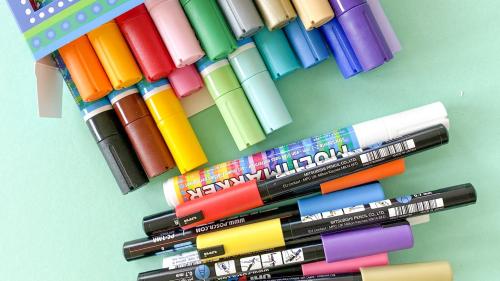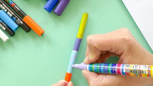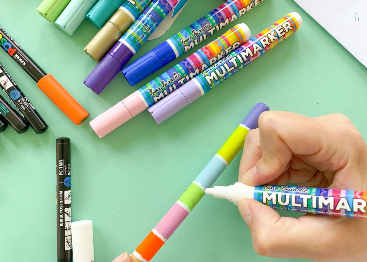 3. Im zweiten Schritt nehmt ihr nun Acrylstifte zur Hand und malt kleinere Details dazu. Punkte, Stricke, Kreise, probiert einfach ein bisschen rum.