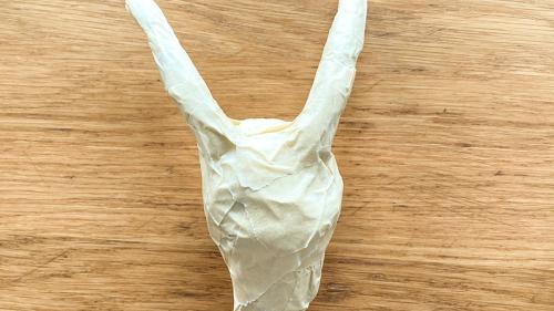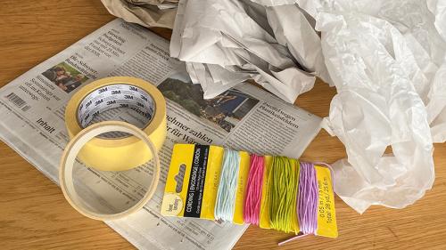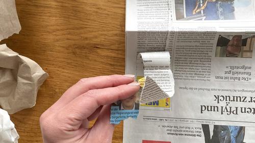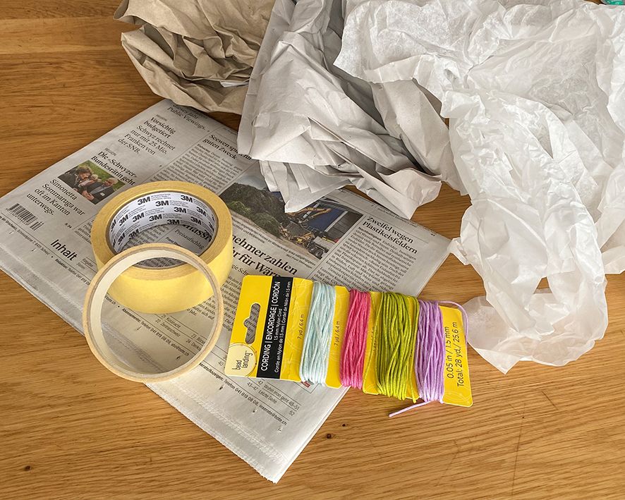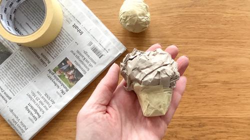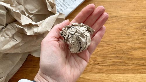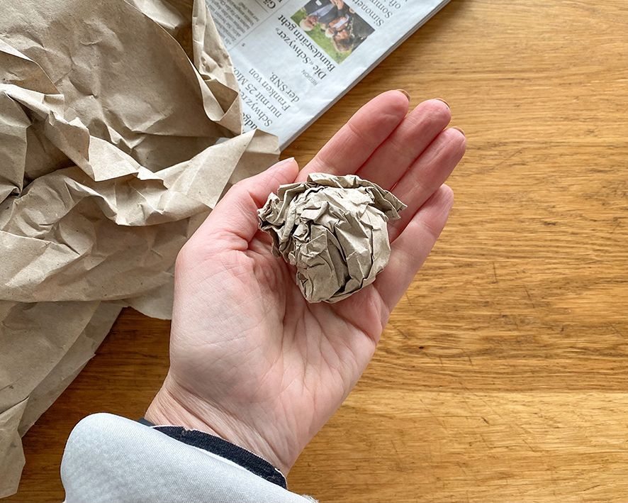1. Nehmt nun das Packpapier und knüllt es feste zusammen.