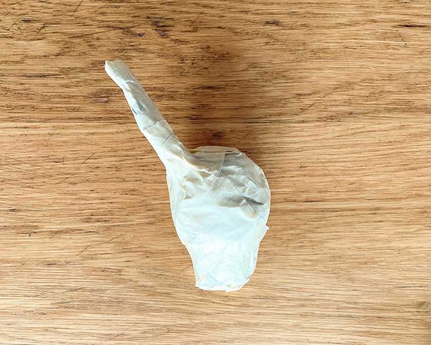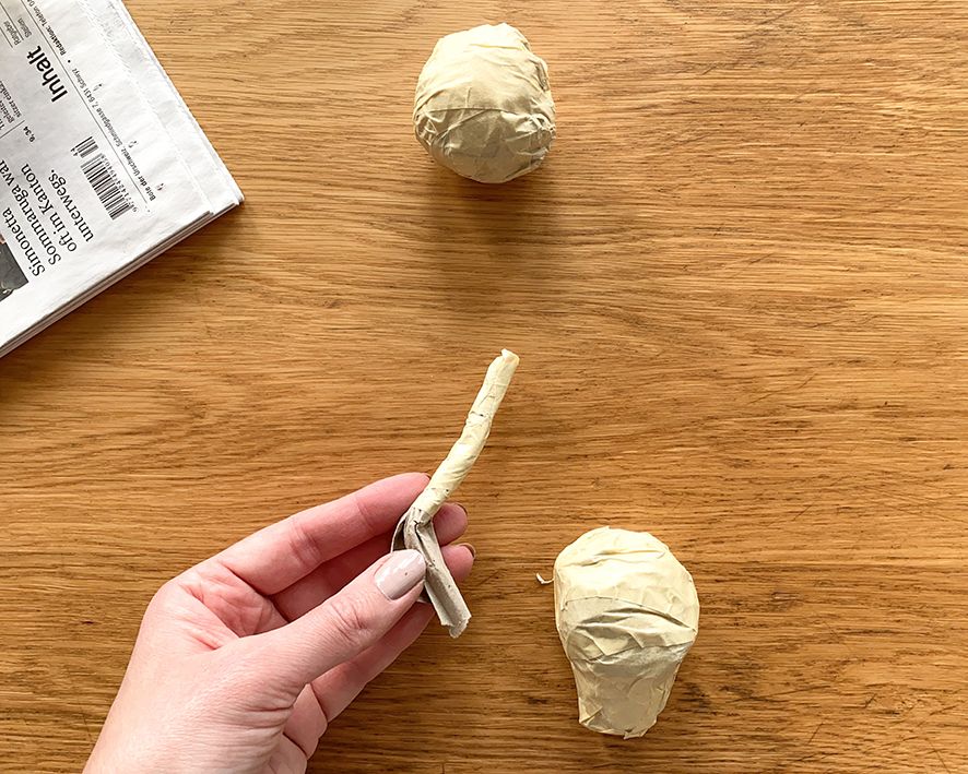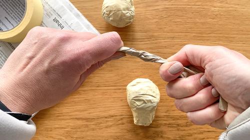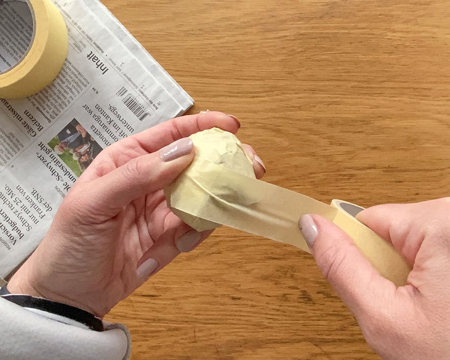 2. Wickelt zur Fixierung das Klebeband drum herum. Hierbei könnt ihr in mehreren Lagen arbeiten, um eurer gewünschten Form nahe zu kommen.
