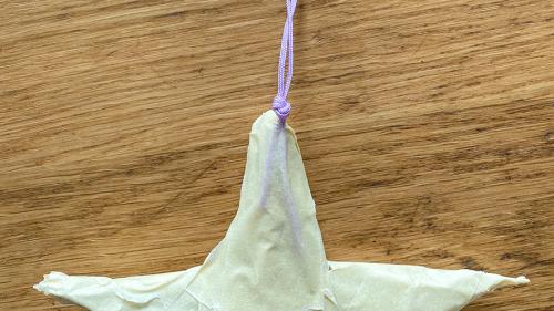 7. Den Nylonfaden zum Aufhängen befestigt ihr einfach mit einem Streifen Klebeband.