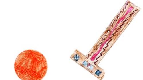 Mannschaftssportart. Die Spieler tragen einen Helm und eine Schutzweste. Sie haben Schläger aus Holz oder Kunststoff.