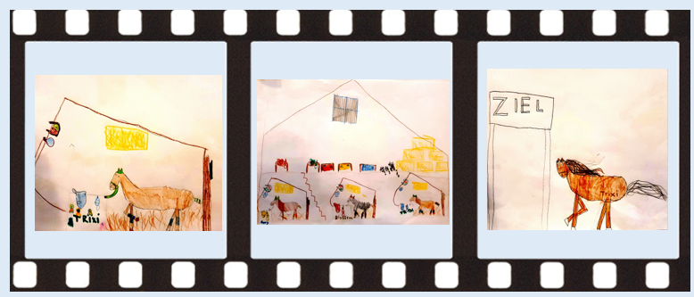 Es war einmal ein Pferd, es hiess Trixi. Es war ein ganz tolles Pferd, denn es hat immer gewonnen. Aber seit ein paar Wochen gab es ein Pferd, es hiess Roxy, das ganz böse war. Es wollte immer gewinnen. Und dann eines Tages haben Trixi und Rony miteinander geredet. Sie haben abgemacht, dass sie sich um Mitternacht treffen und gegeneinander reiten. Endlich war Mitternacht und sie wollten es einander zeigen, aber das erste Mal war es unentschieden. Dann sind sie noch einmal geritten, in einem richtigen Wettkampf. Dabei hat Trixi gewonnen.