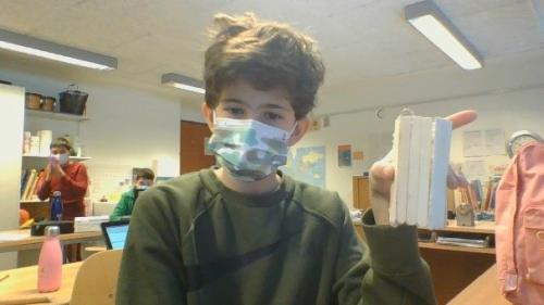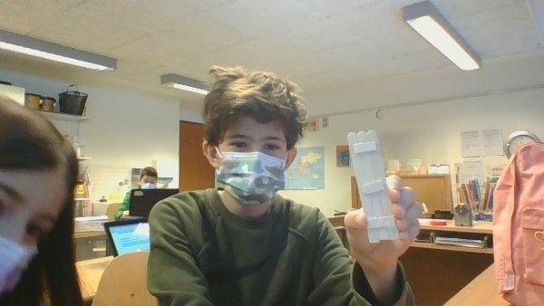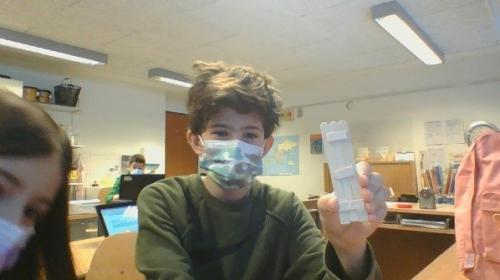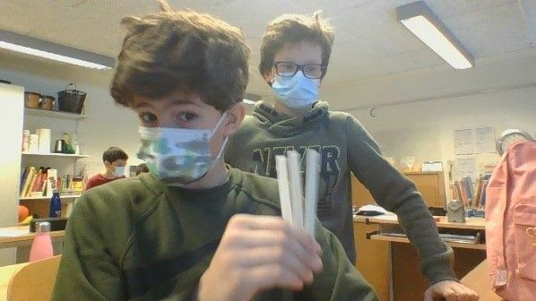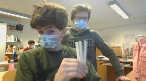 Luca, Sandro, Tiziano und Leonor zeigen dir, wie du eine Rakete aus Glacestäbchen basteln kannst.