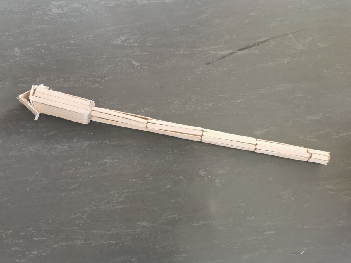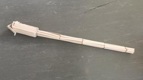 Cò vzais cu cha nus vains fabricho la raketa: Tü drouvast üna zaungia e ca.35 bastunins da lain da glatsch e colla choda. Uossa poust cumanzer a taglier e tacher. Ils purtrets suotvart at güdan. Bun divertimaint.