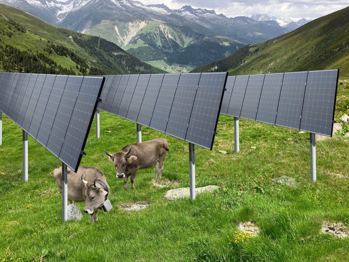Implants solars immez la pas-chüra, sco per exaimpel a Nalps – simils progets vegnan actualmaing discutats in differentas regiuns dal Grischun (Visualisaziun: Axpo).