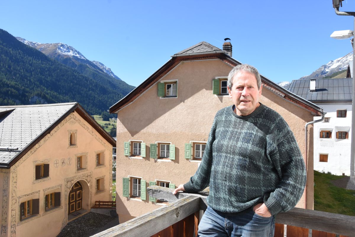 Erwin Strimer gioda la vista davent da sia chasa paterna ad Ardez (fotografia: Nicolo Bass).
