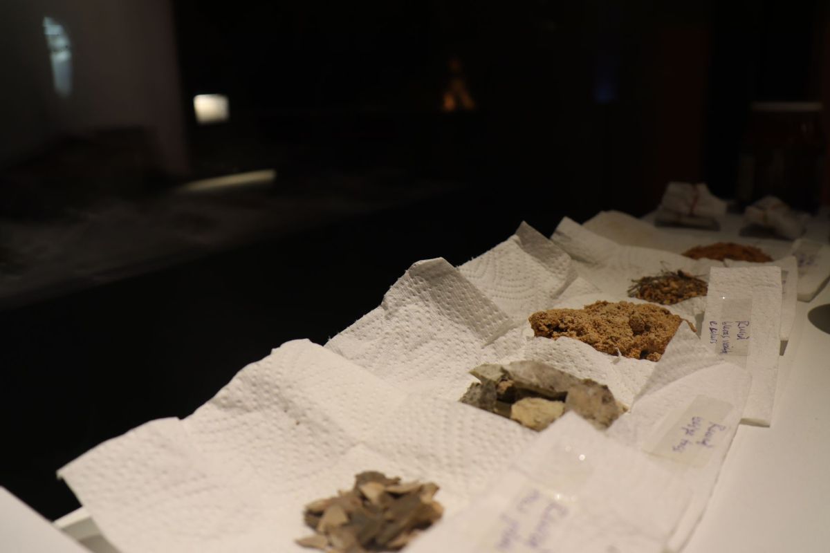 Ils sedimaints da diversas funtanas cha l’artista Regula Verdet-Fierz ha dovrà per l’exposiziun actuala (fotografia: Martin Camichel).