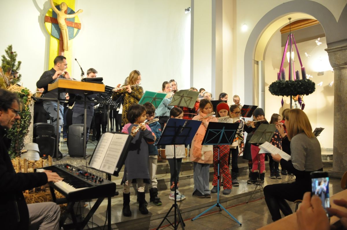 Die Querflöte stand an diesem Adventsauftritt im Mittelpunkt, doch auch Gesangseinlagen trugen zum Erfolg des Konzerts der Musikschule Oberengadin in der St. Moritzer Karlskirche bei. Foto: Marie-Claire Jur