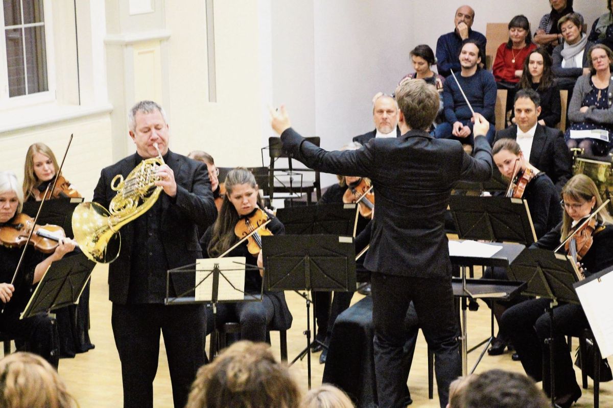 Das Engadiner Sinfonieorchester mit dem Hornisten Stefan Dohr gastierte unter der Leitung von Joshua Weilersteinin Zuoz. Foto: Stefanie Wick Widmer