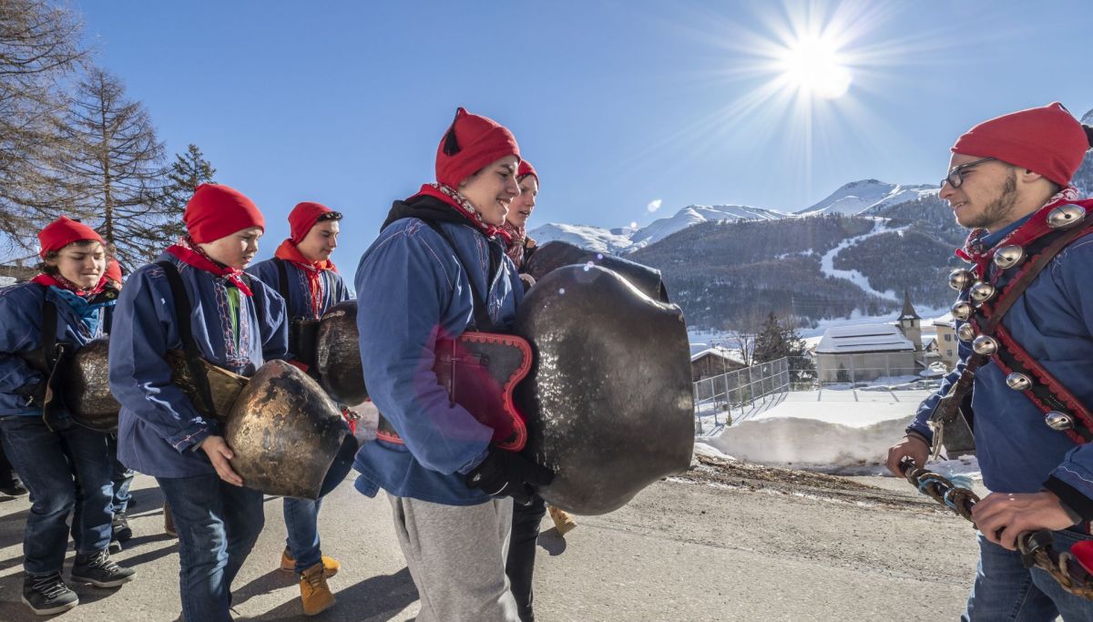 A partir da quist an faun las mattas eir part dals cortegis da Chalandamarz a Zuoz, cun blusas e chantand, ma sainza s-chella (fotografia: Daniel Zaugg).