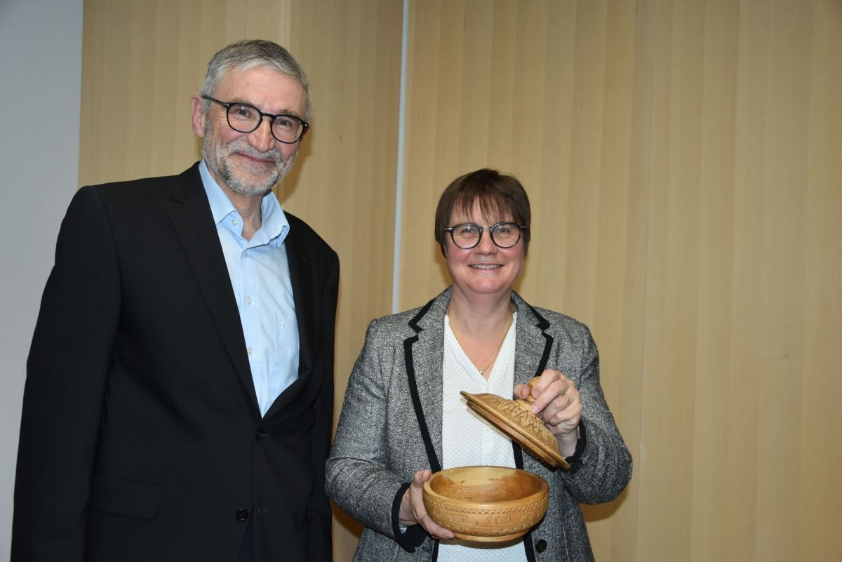 Il president da la Società da commerzi e mansteranza Engiadina Bassa ha salüdà al nouv capo da Scuol Aita Zanetti (fotografia: Nicolo Bass).