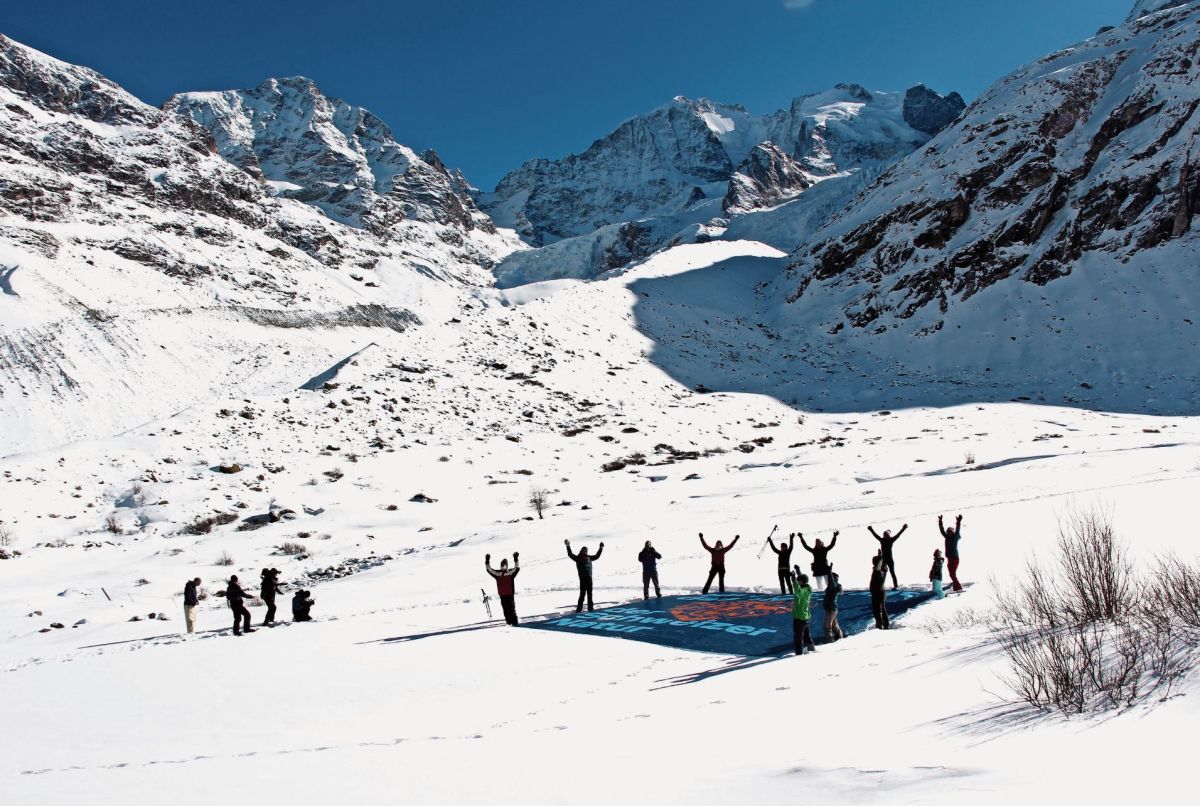 Mit dieser Blache zeigen die Umweltschützer, wo die mögliche Staumauer in der Val Roseg zu stehen kommen könnte. Fotos: Stefanie Wick Widmer
