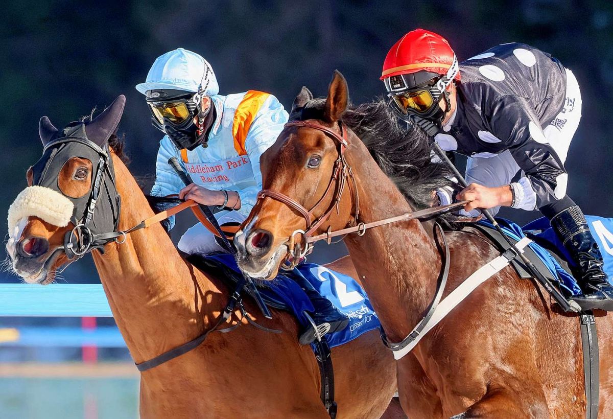 Top Max (rechts) brachte sich in Position für den kommenden Rennsonntag mit dem Grossen Preis von St. Moritz als Höhepunkt. Foto: www.swiss-image.ch/Andy Mettler
