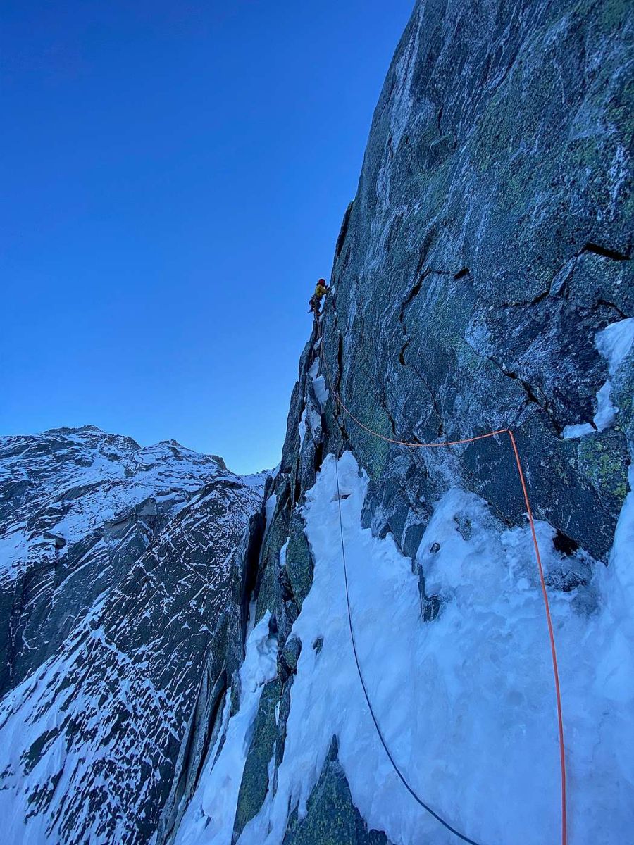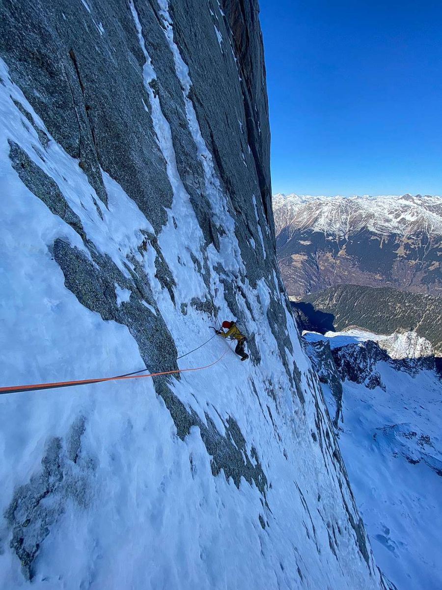 Mitte Januar gelang dem Italiener Simone Porta und dem Engadiner Marcel Schenk die vierte Winterbegehung der Via degli Inglesi in der Ostwand des Pizzo Badile. Sie waren die erste Seilschaft, welche die Route im Winter an einem Tag kletterten. Dabei ...