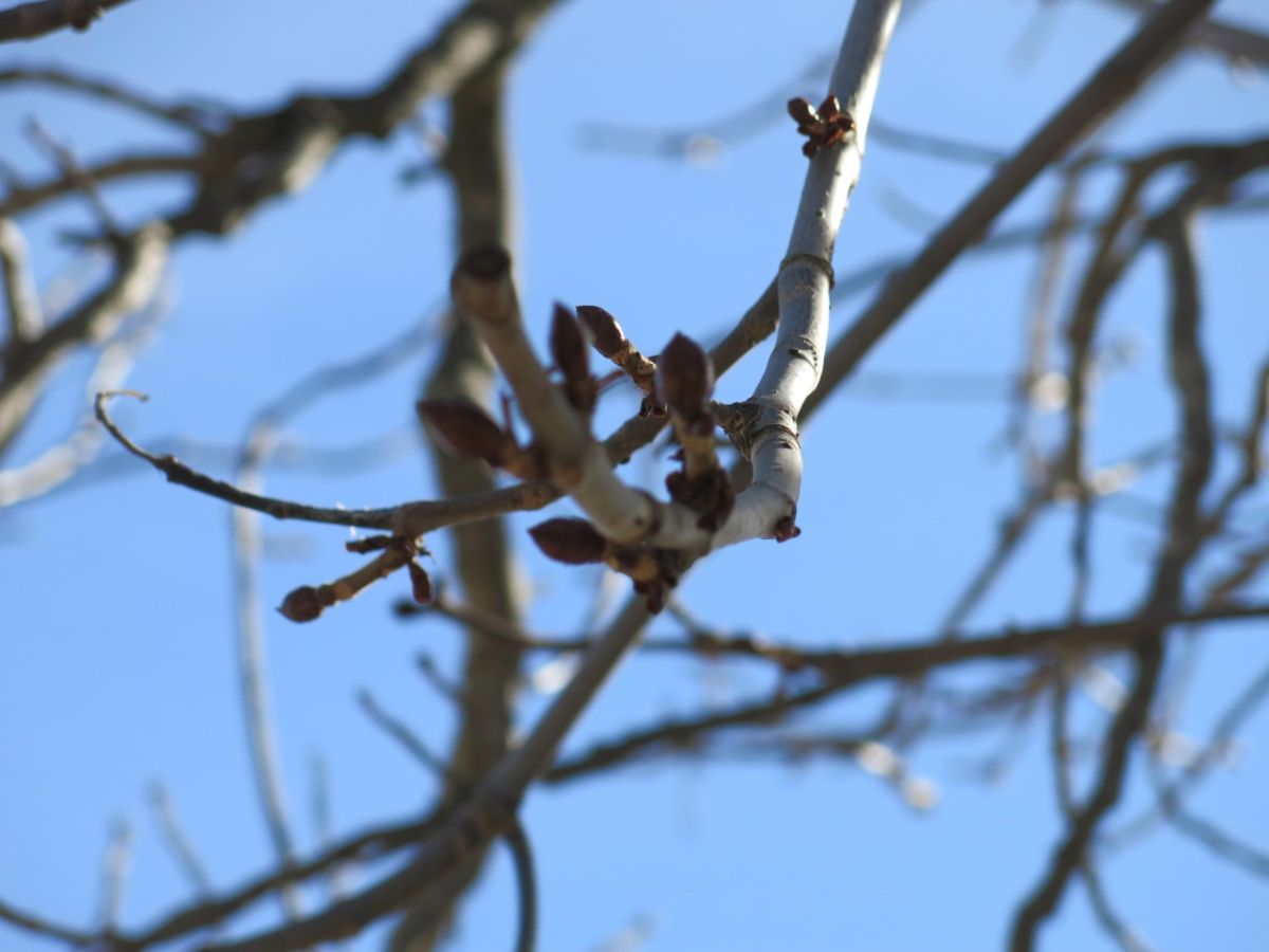 Die Blattknospen der Rosskastanien, die den Weg von Sent Richtung Val Sinestra säumen, kündigen den Frühling an. Foto: Bettina Gugger
