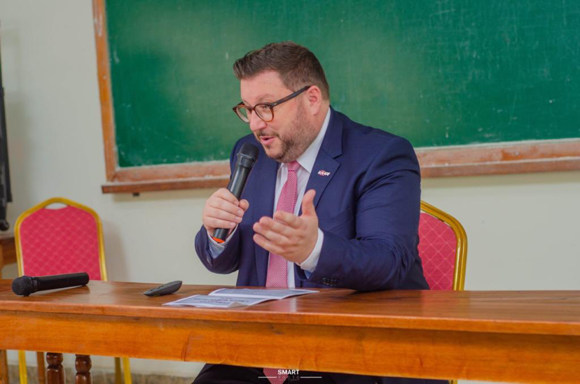 «Eivna rumantscha» a l’università da Kinshasa – l’ambaschadur Chasper Sarott tegna ün referat (fotografia: mad)